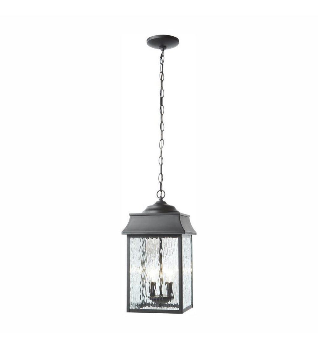 Home Decorations Collection Scroll 2-Light Black Outdoor Hanging Pendant Light with Water Glass-302361089